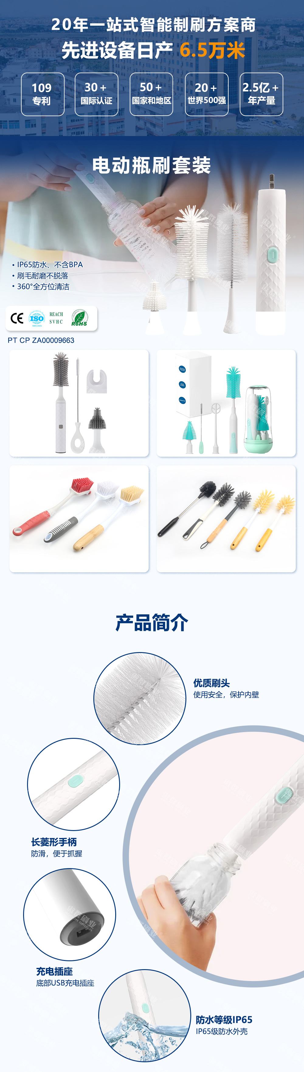 - 產(chǎn)品特點(diǎn):IP65防水、不含BPA刷毛耐磨不脫落,360°全方位清潔