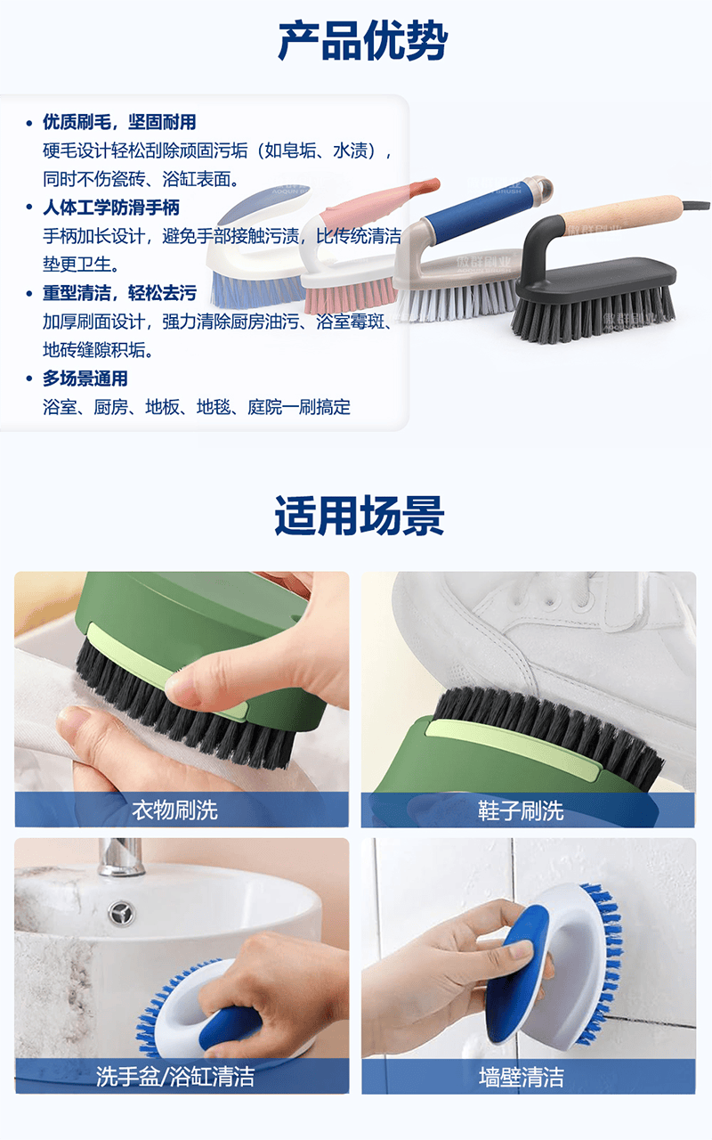 - 功能/用途:可用于衣物刷洗、鞋子刷洗、洗手盆 / 浴缸清潔、墻壁清潔等。
